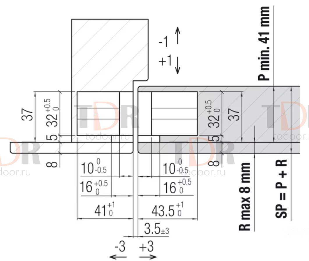 Петля применима при облицовки стен / дверей дополнительной панелью толщиной до 8 мм.