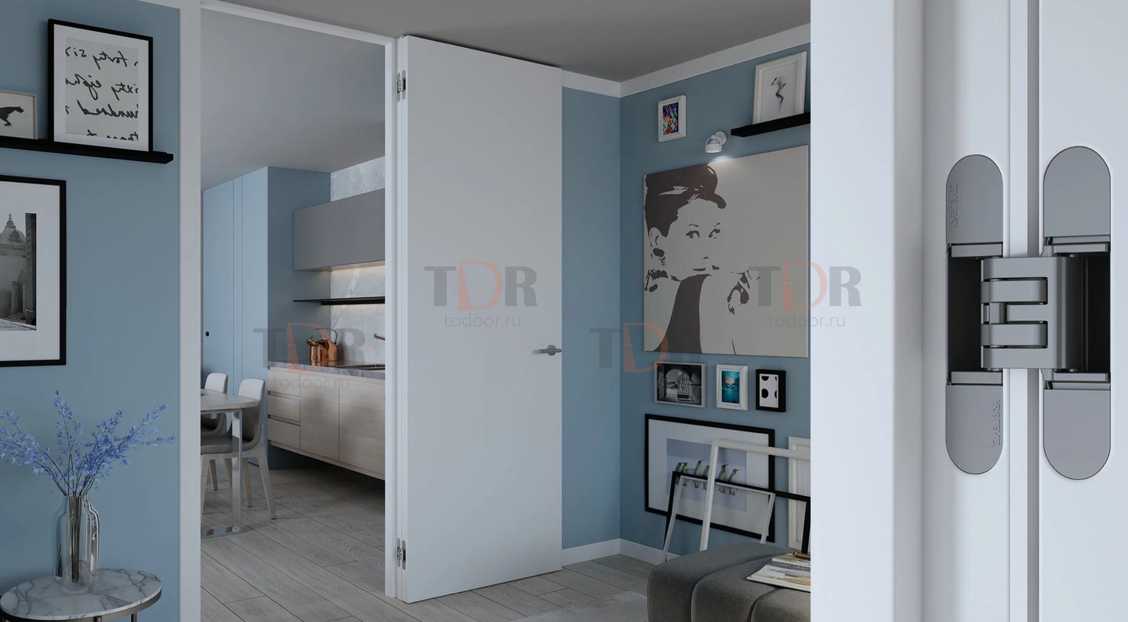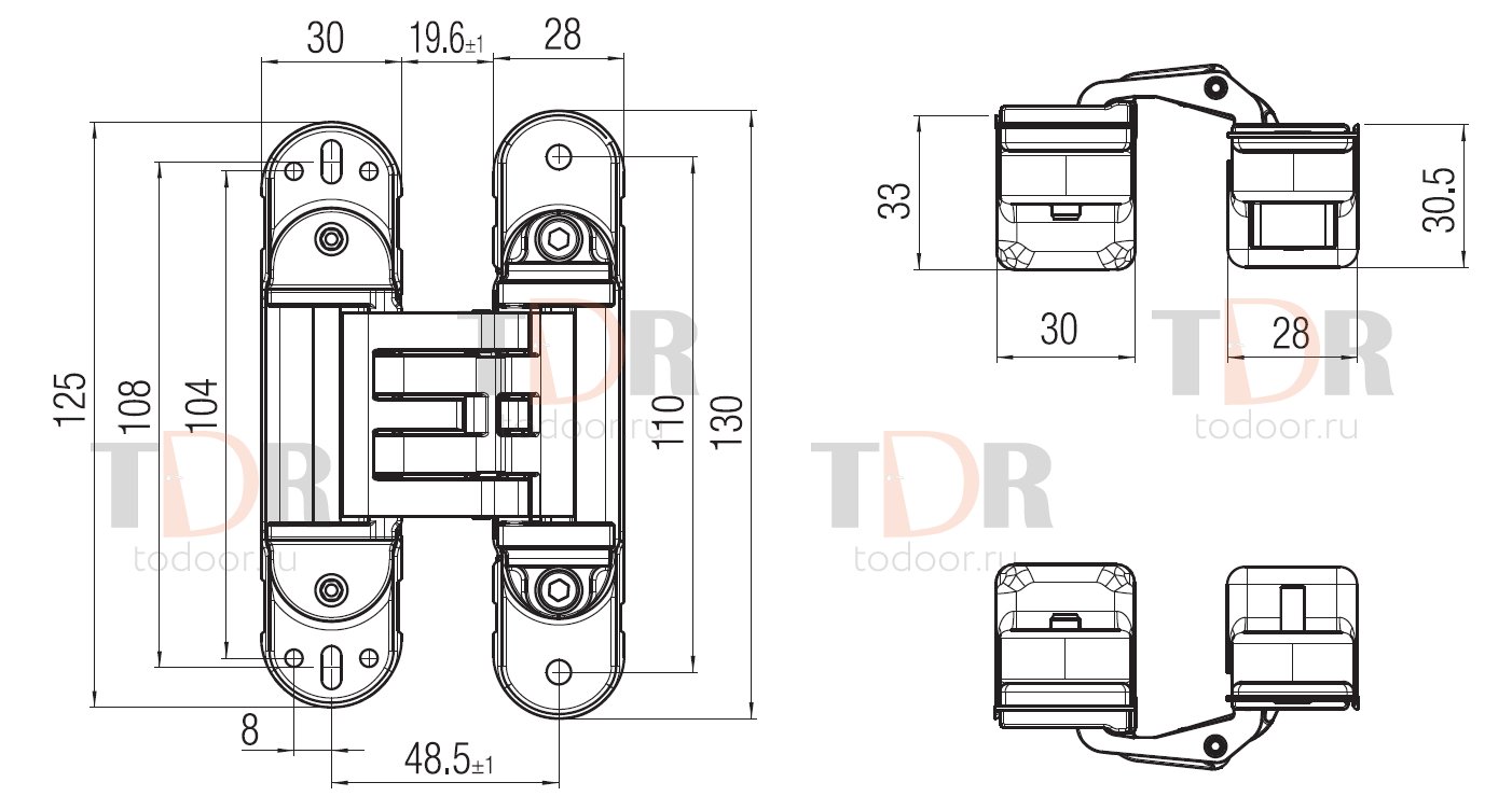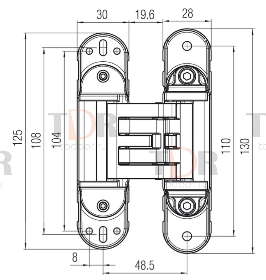 Kubica Hybrid K6360 38 от Krona Koblenz . Скрытая петля из высокопрочной стали и сплава ZAMAK для межкомнатных дверей устанавливаемых в одной плоскости с наличником, толщина наличника до 12 мм, для деревянных, стальных и алюминиевых коробок. Грузоподъемность до 60 кг с двумя петлями, угол открывания до 180°, минимальная толщина двери 38мм, износостойкие втулки, отсутствие необходимости в смазке/обслуживании. Реверсивная для правой/левой двери. Трех сторонняя регулировка по горизонтали + 2/-1,5 мм по вертикали +/- 2,5 мм, по плоскости +/- 1 мм.