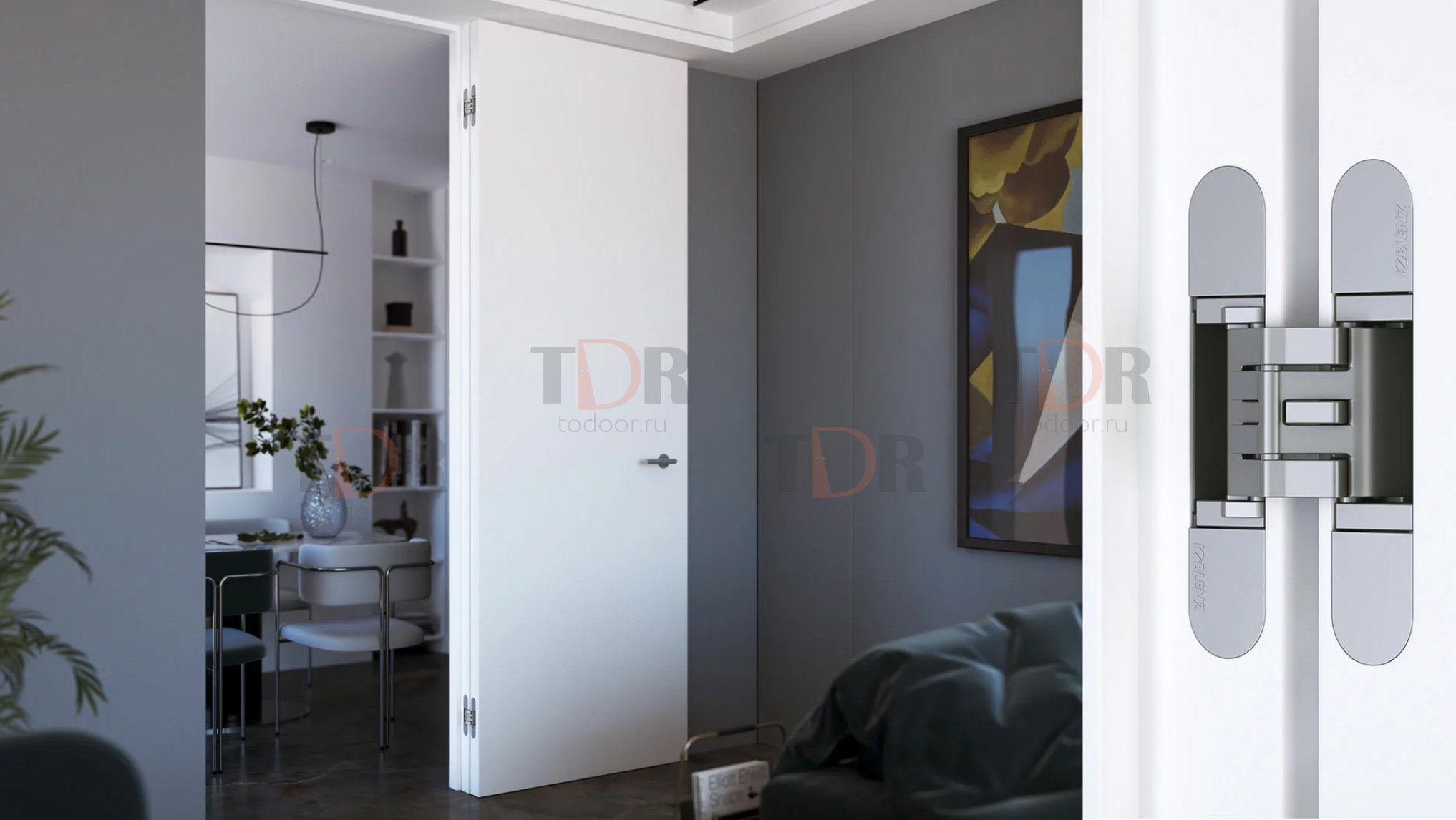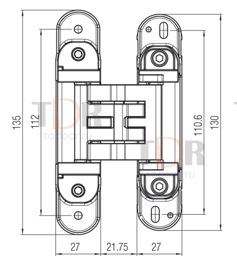 Kubica Hybrid K 2760 от Krona Koblenz. Скрытая петля из высокопрочной стали и сплава ZAMAK, для межкомнатных дверей заподлицо со стеной и деревянных, стальных и алюминиевых коробок. Грузоподъемность до 60 кг с 2 петлями. Угол открывания до 180°, врезка по центру двери толщиной макс. 45 мм, толщина двери мин. 35 мм, износостойкие втулки, не требующие смазки/обслуживания, реверсивные для правой/левой двери. Трех сторонняя регулировка: по горизонтали +3/- 1,5 мм, по вертикали +/- 2,5 мм, по плоскости +/- 1 мм.